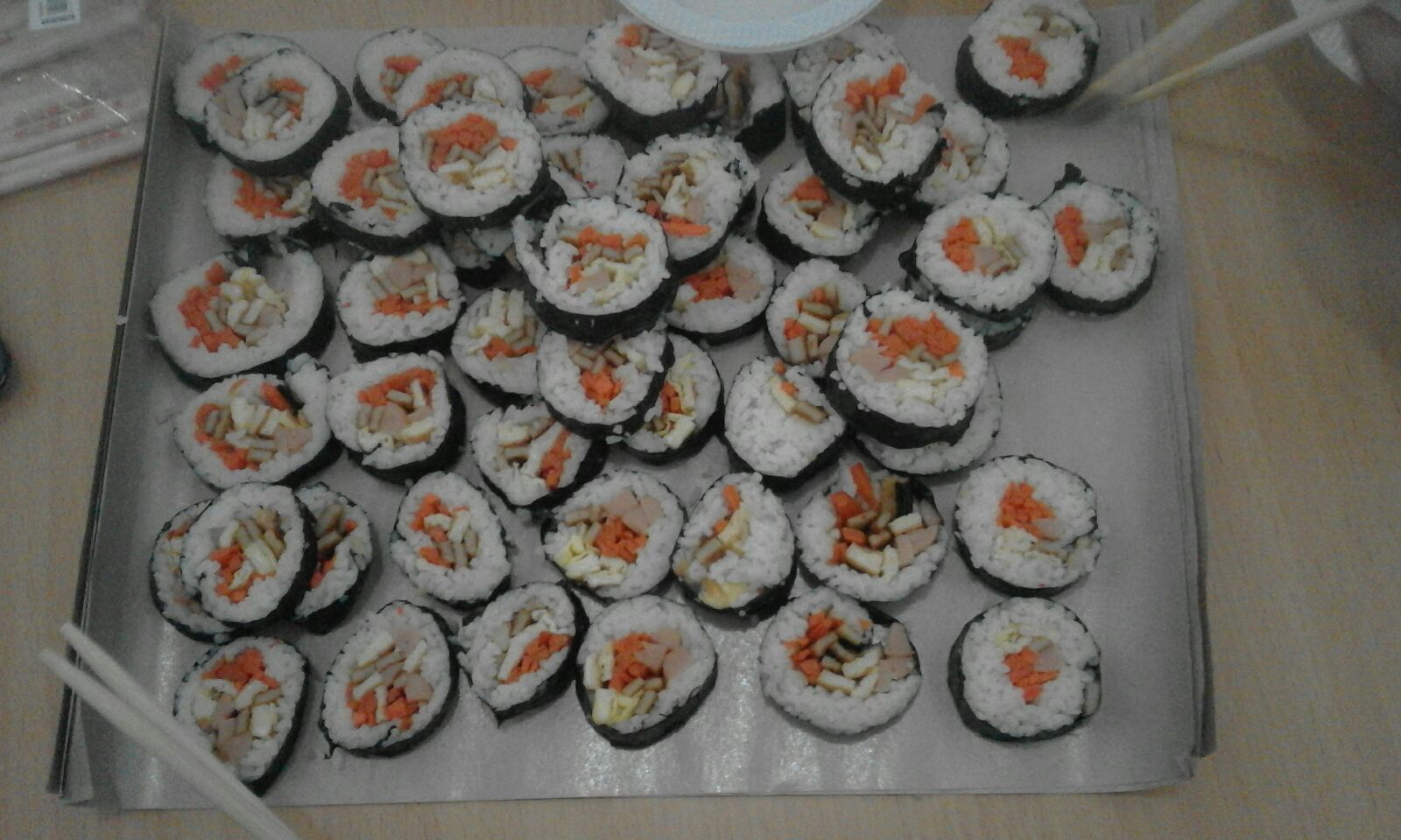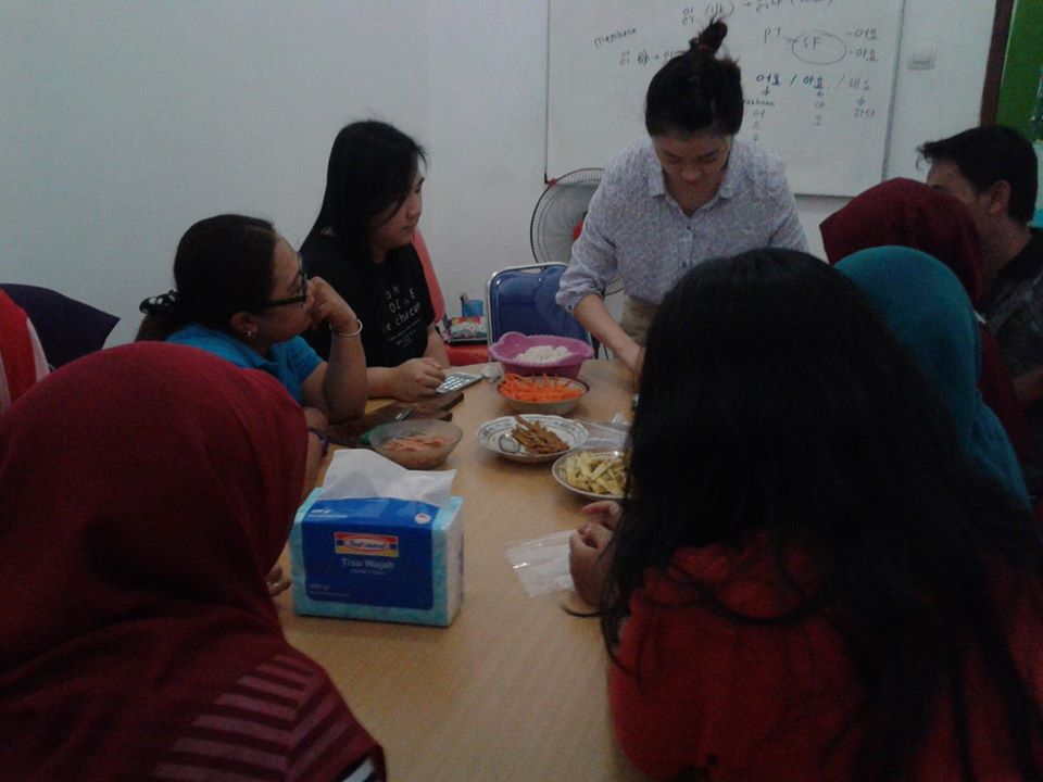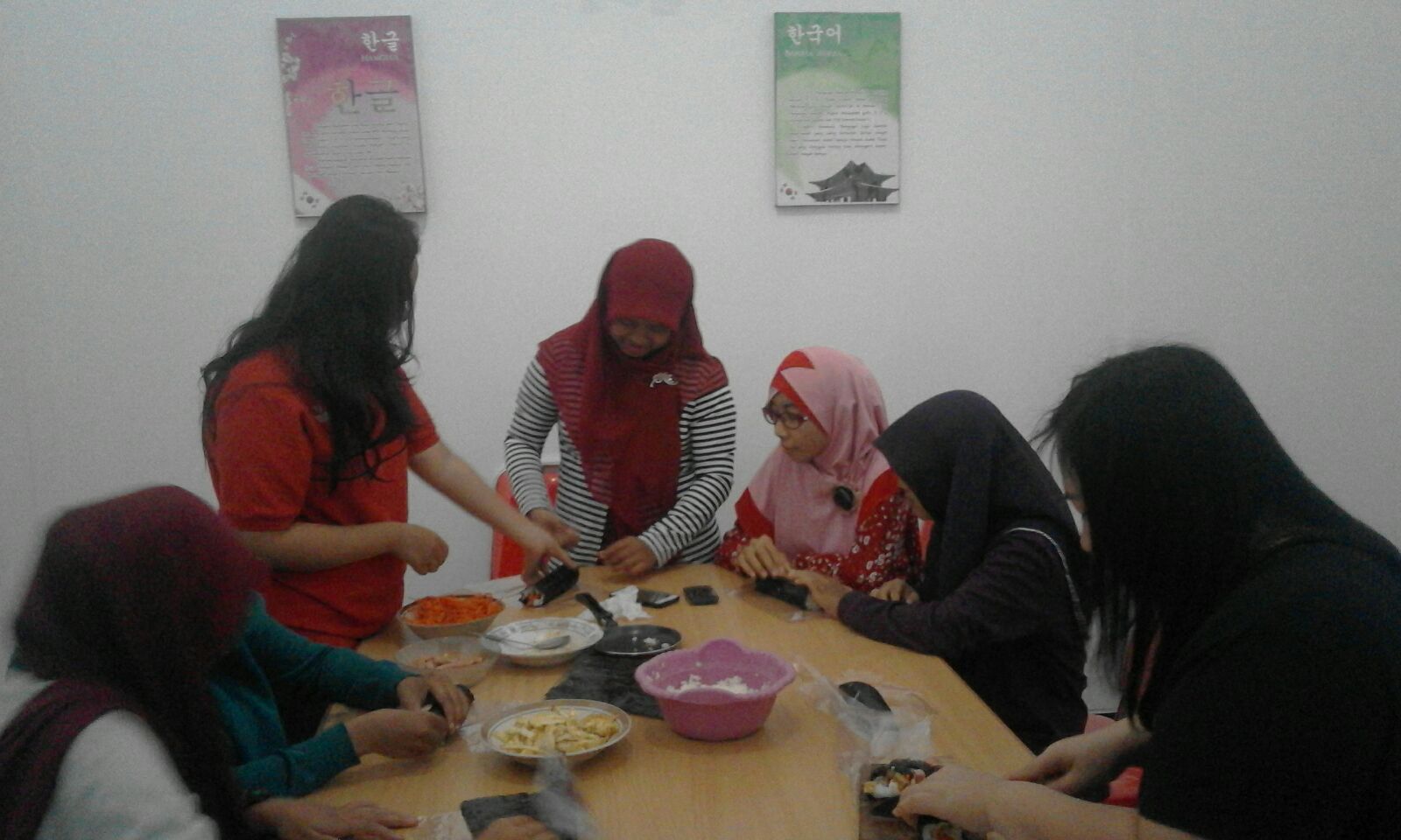 Sabtu, 17/10 lalu kami dan para murid dijamu dengan beberapa Korean Food buatan Sue. Layaknya seorang chef, Sue membimbing kami memasak Kimbap, Tteokpokki, dan ramyeon. Menu yang sangat sederhana, tapi terasa berkelas bagi kami karena kehadiran Sue yang membuat segalanya terasa lezat. Tidak hanya mengenalkan makanan dan bahan makanan khas Korea, Sue juga berbagi cerita tentang kehidupan di Seoul sekarang ini.