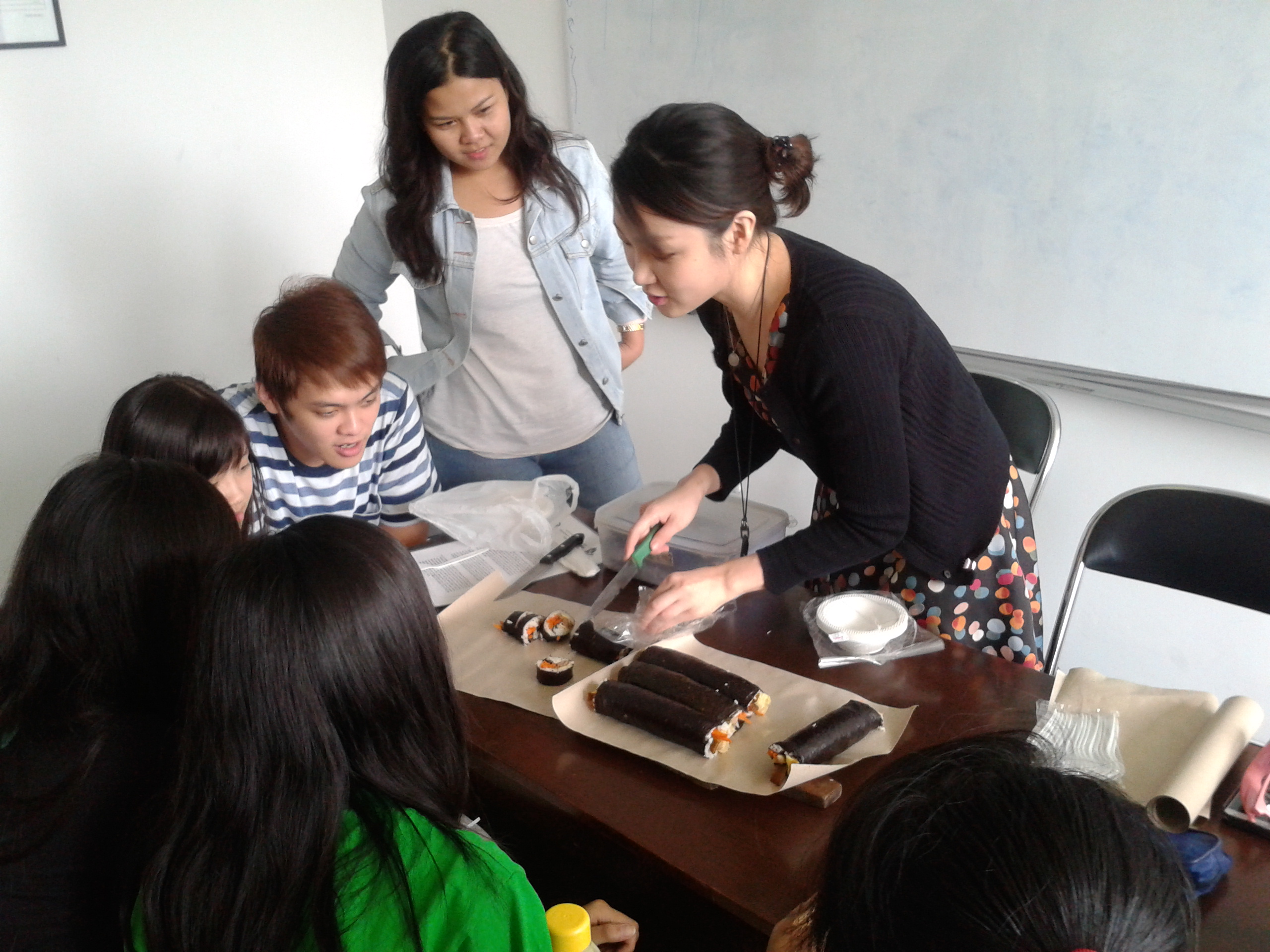 Selain penyampaian materi Bahasa Korea yang intensif, kelas Bahasa Korea di UNIKA semester ganjil 2015 ini juga diberikan kesempatan untuk mengenal adat dan budaya Korea lebih mendalam. Kelas budaya ini seacara langsung diampu oleh penutur Korea Ms. Suyoen Jo. Kelas Budaya ini meliputi pengenalan baju traditional Korea “Hanbook” dan juga makanan yang menjadi ciri khas Korea yakni “Kimbab”. Semoga semeter genap 2016 akan menjadi lebih menarik dan berwarna dalam belajar Bahasa Korea. Sampai berjumpa lagi di kelas Bahasa Korea Maret 2016.