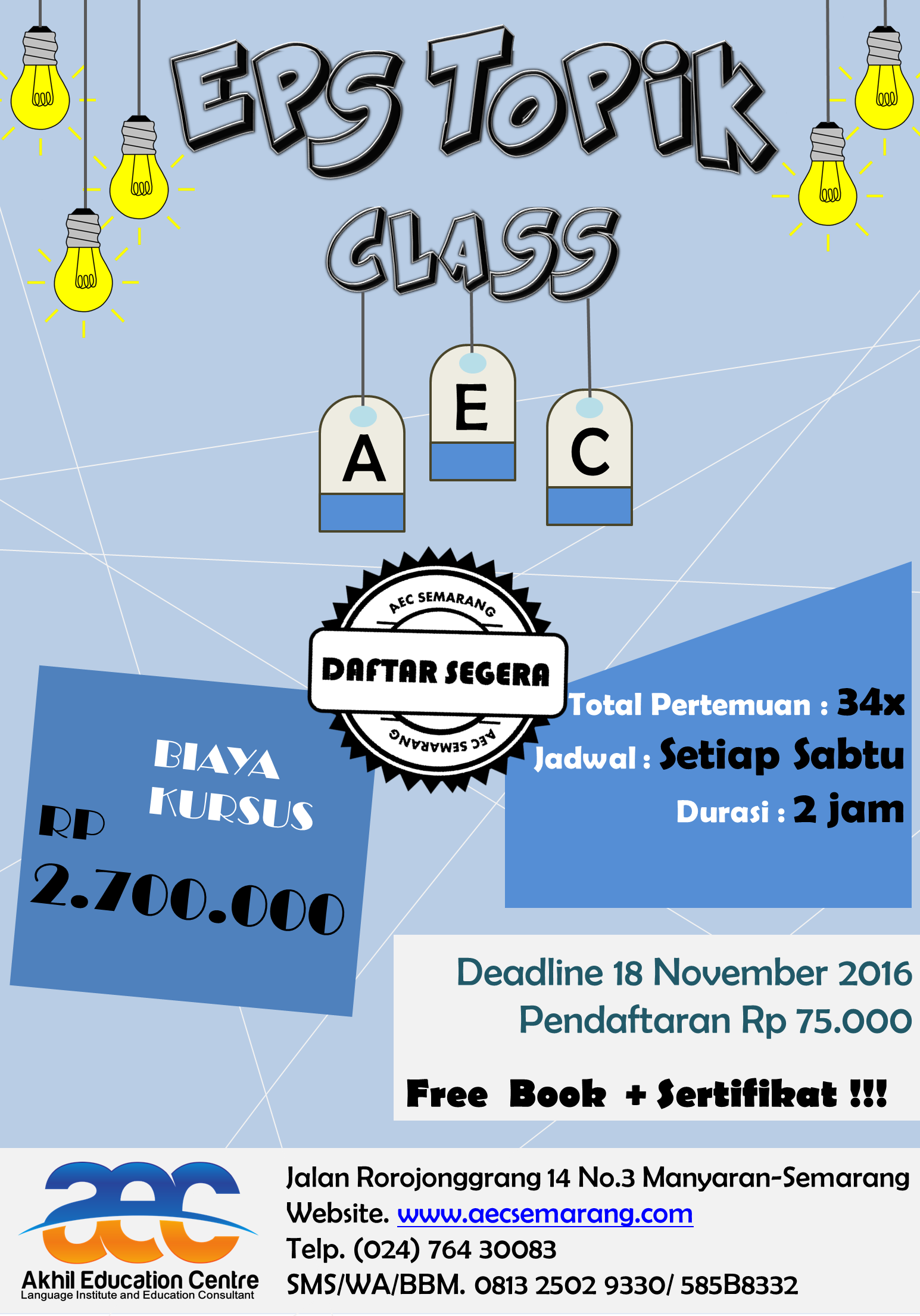 Pendaftaran kelas “EPS TOPIK” ini akan ditutup: 18 November  2016.