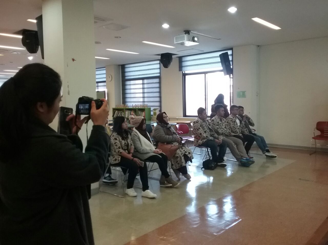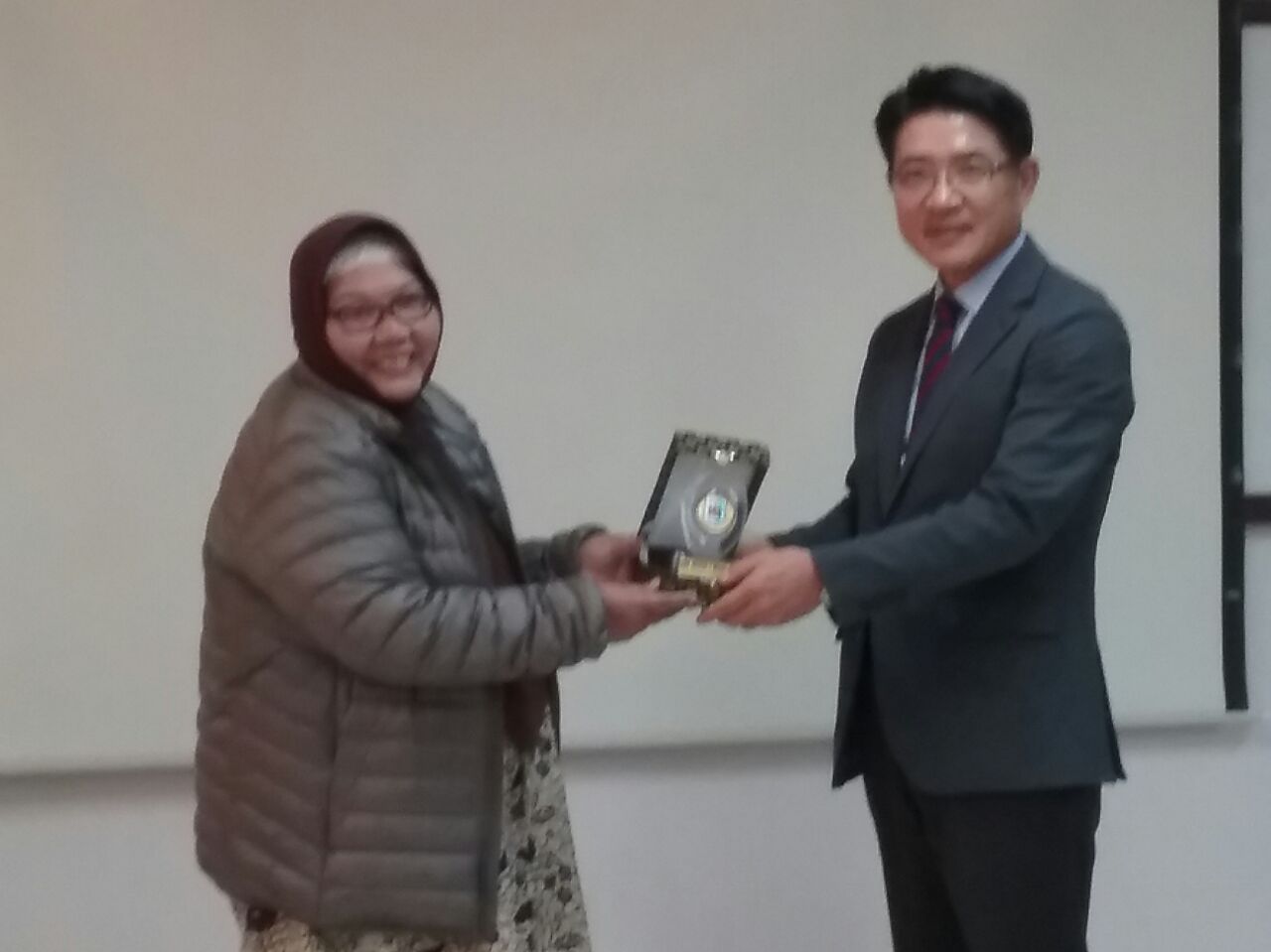 Rombongan Korea Edutrip Batch II ini tidak lupa memberikan cendramata untuk Prof. Imanuel. Cendramata yang diberikan berupa blankon yang sudah dipersiapkan sebelumnya. Blankon tersebut langsung dikenakan oleh Proff Imanuel. Sembari berkunjung ke tempat orang, tapi kita tidak lupa pula mengenalkan kebudayaan kita di sana seperti halnya cendramata blankon tersebut…..