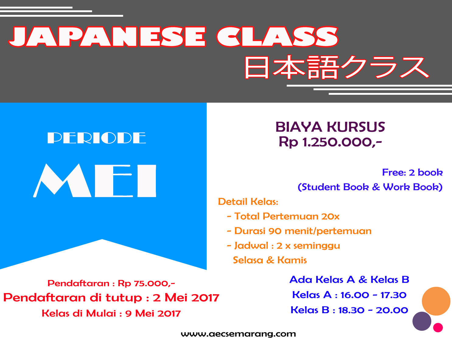 Detail Kelas Bahasa Jepang di AEC Semarang tahun ajaran 2017  bisa kalian simak di bawah ini ya….
