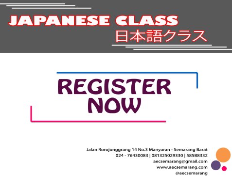 Pendaftaran Kelas Bahasa Jepan tahun ajaran 2017 di Akhil Education Centre (AEC) Semarang sudah dibuka ya guys. Tahun ajaran 2017 ini Kelas Bahasa Jepang dibuka tiga periode sekaligus guys. Periode yang dibuka yaitu periode Mei, periode September dan periode November.