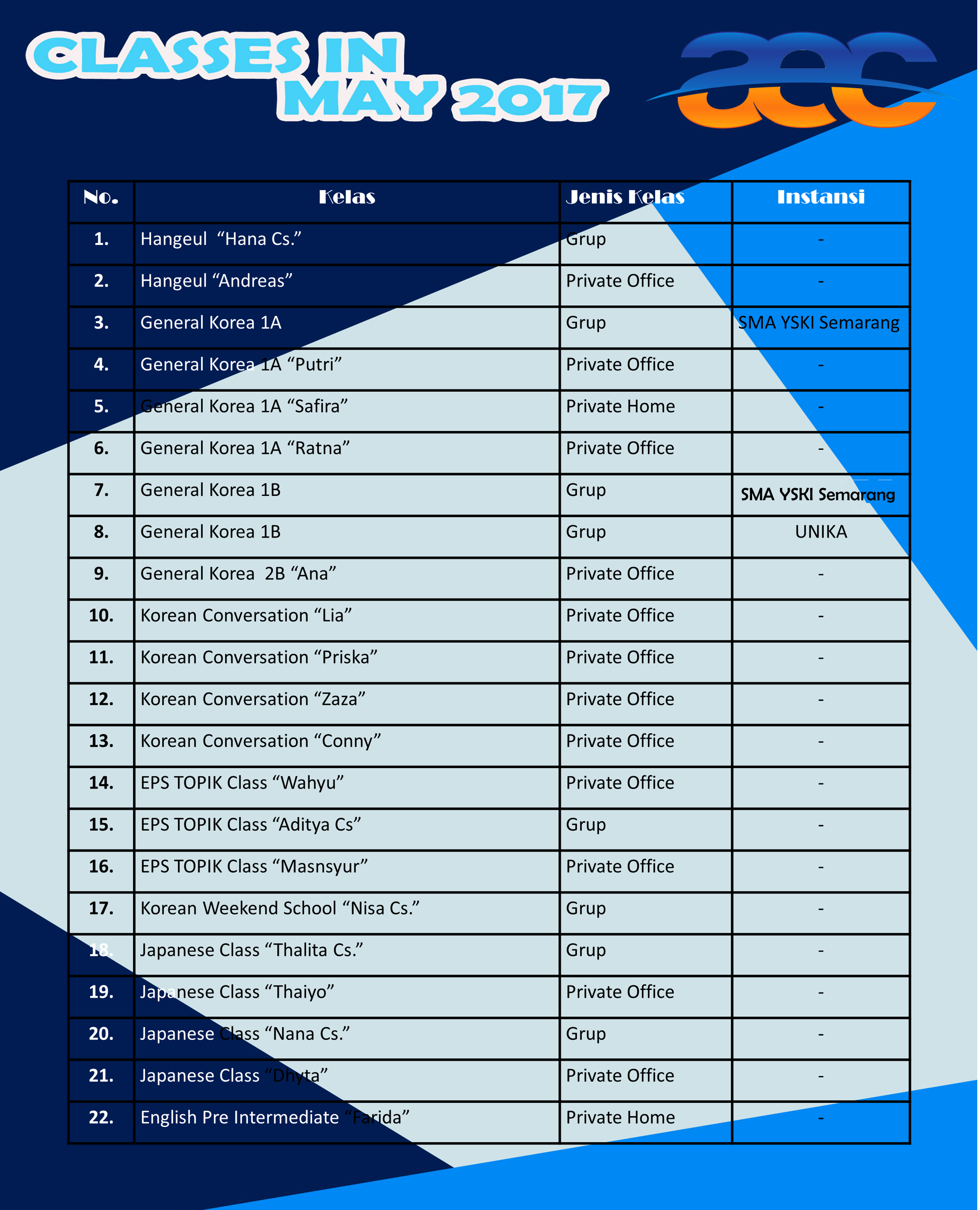[…] https://aecsemarang.com/2017/05/03/update-class-in-may-2017/ […]