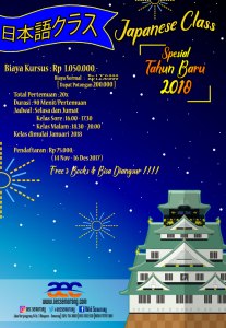 Detail Kelas Bahasa Jepang Spesial Tahun Baru 2018 sebagai berikut: