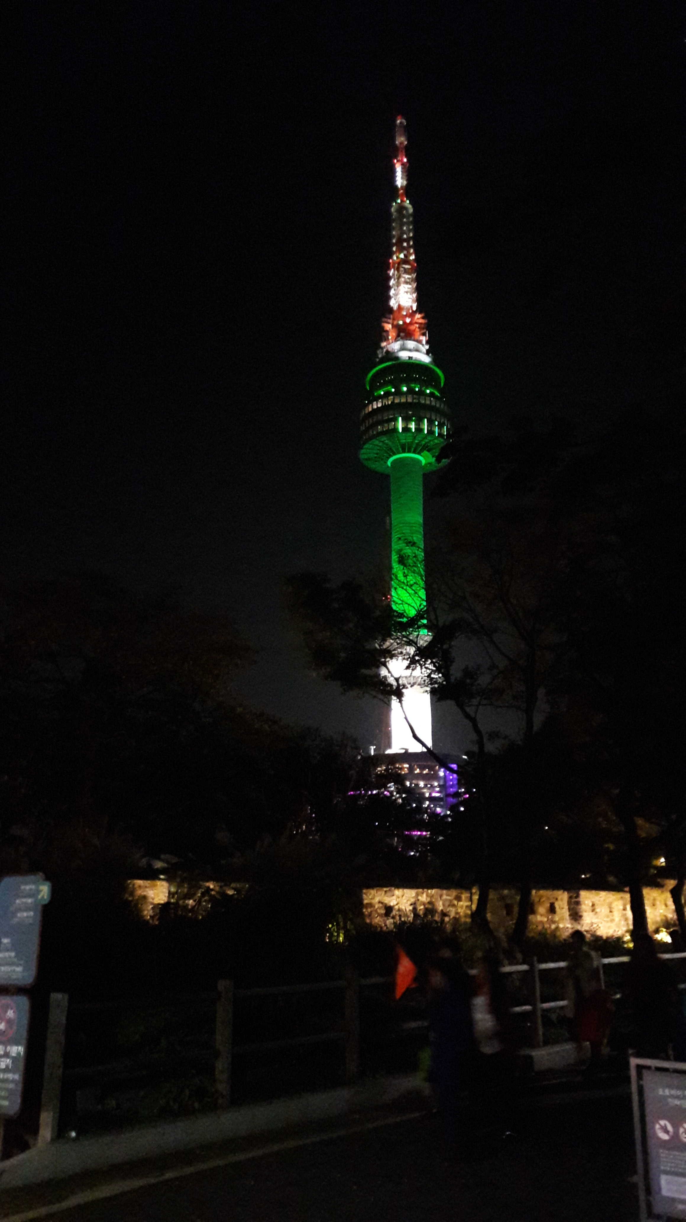 Namsan Seoul Tower ini adalah salah satu landmark Kota Seoul. Pada mulanya Namsan Tower ini adalah pemancar radio sebelum berubah menjadi objek wisata. Pada saat berada di Namsan Tower pengunjung dimanjakan dengan pemandangan hamparan Kota Seoul. Lebih direkomendasikan datang pada saat malam hari ya. Karena pada saat malam hari hamparan kota Seoul akan lerlihat lebih mempesona. Namsan Tower ini dijuliki sebagai Menara cinta. Hal ini karena banyak dijumpai gembok cinta yang biasa dipasang dibeberpa sudut. Setiap pengunjung pasti tidak lupa dengan gembok cinta ini. Gembok ini dipercaya sebagai lambang cinta sepasang kekasih. Gembok yang bertuliskan nama sepasang kekasih kemudian dikaitkan di pagar menara lalu kuncinya dibuang dari atas menara sejauh-jauhnya, sepasang kekasih itu akan abadi dan tidak akan pernah putus. Ceritanya seperti itu ^^