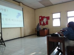 Di atas tadi merupakan percakapan pembuka pada Ekstarkulikuler Bahasa Korea di SMA Negeri 8 Semarang, Rabu 17 Januari 2018 kemarin. Ekstakulikur Bahasa Korea ini merupakan bentuk kerjasama Akhil Education Centre (AEC) Semarang dengan SMA Negeri 8 Semarang diprogram Bahasa.