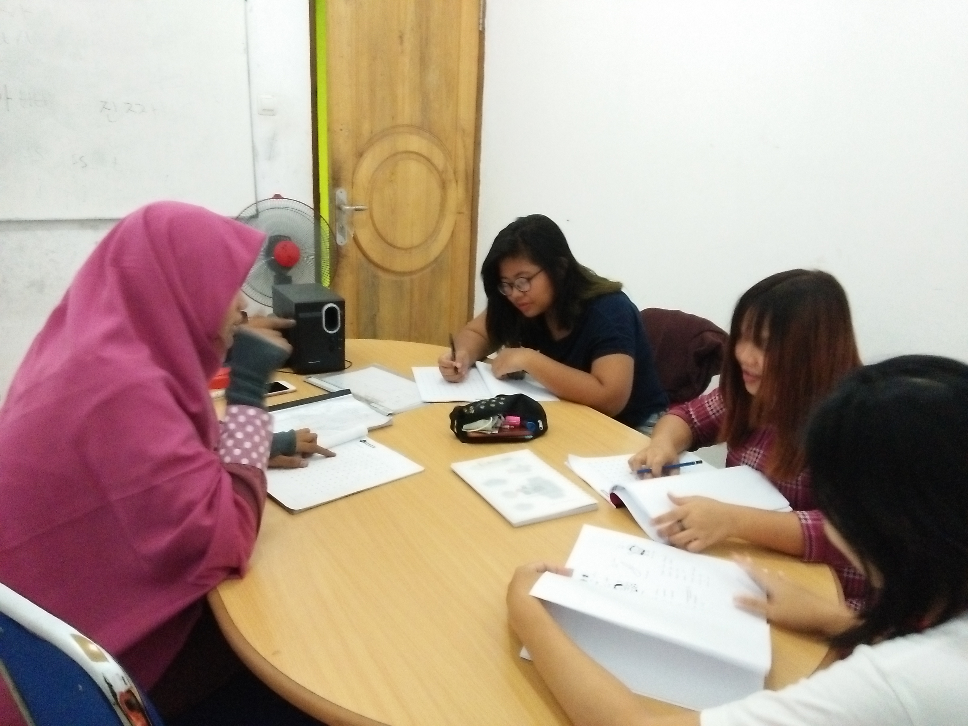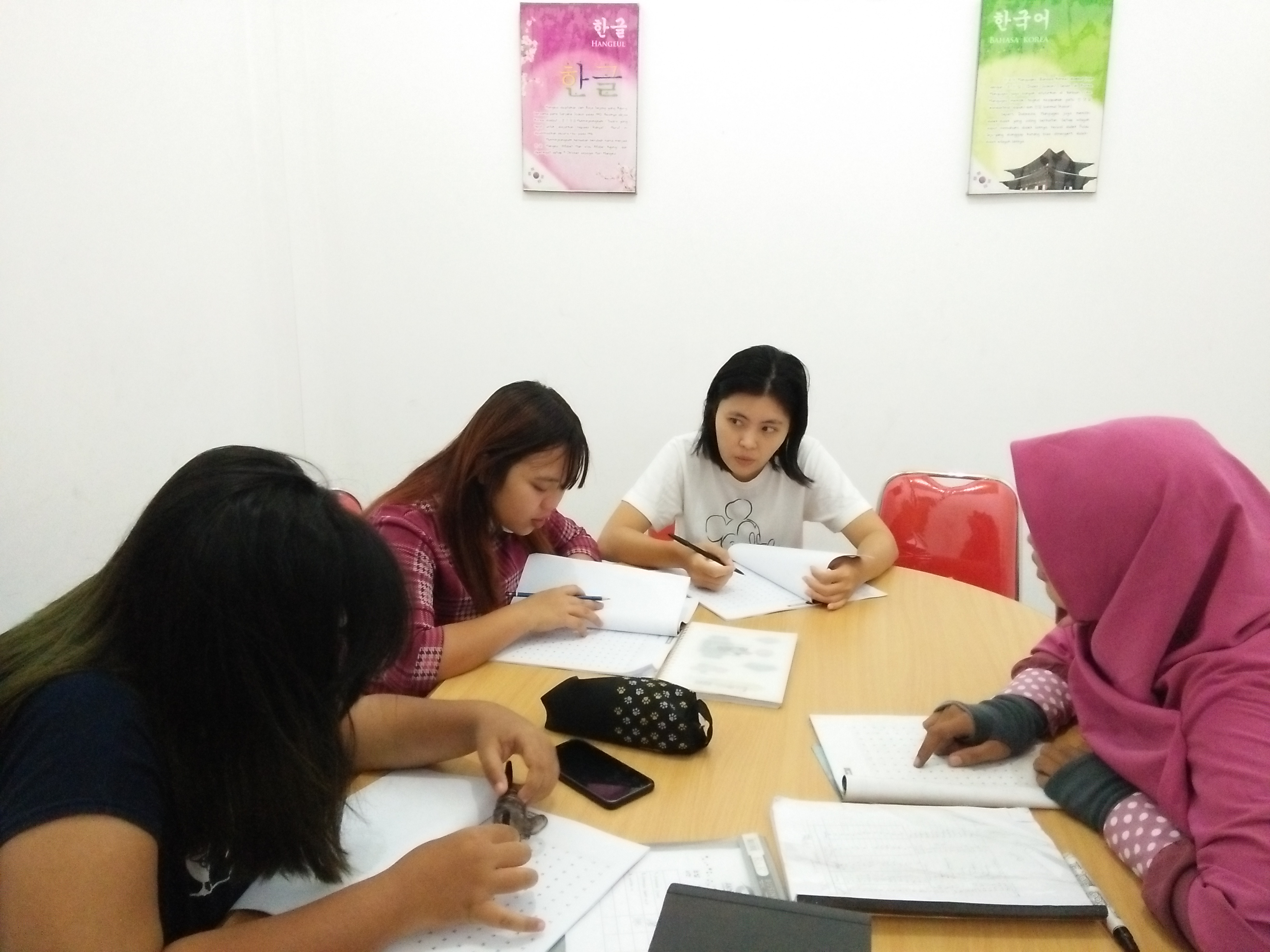 Siswa-siswa ini belajar bersama dengan Dwiki Ssaem. Pertemuan pertama kemarin, Dwiki Ssaem memperkenalkan Huruf Korea (Hangeul) dan tatacara perkenalan dalam Bahasa Korea. Siswa-siswa ini sangat antusias mengikuti pembelajaran. Meskipun ketiga siswa tersebut memiliki karakter yang berbeda-beda tapi mereka bisa melebut belajar bersama.