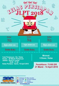 Bagi teman-teman yang sudah mendaftar ujian JLPT untuk bulan Juli mendatang dan ingin mempersiapkannya dengan baik, bisa ikutan Kelas Persiapan JLPT di AEC Semarang. Detail kelasnya seperti apa bisa di chek yuk.