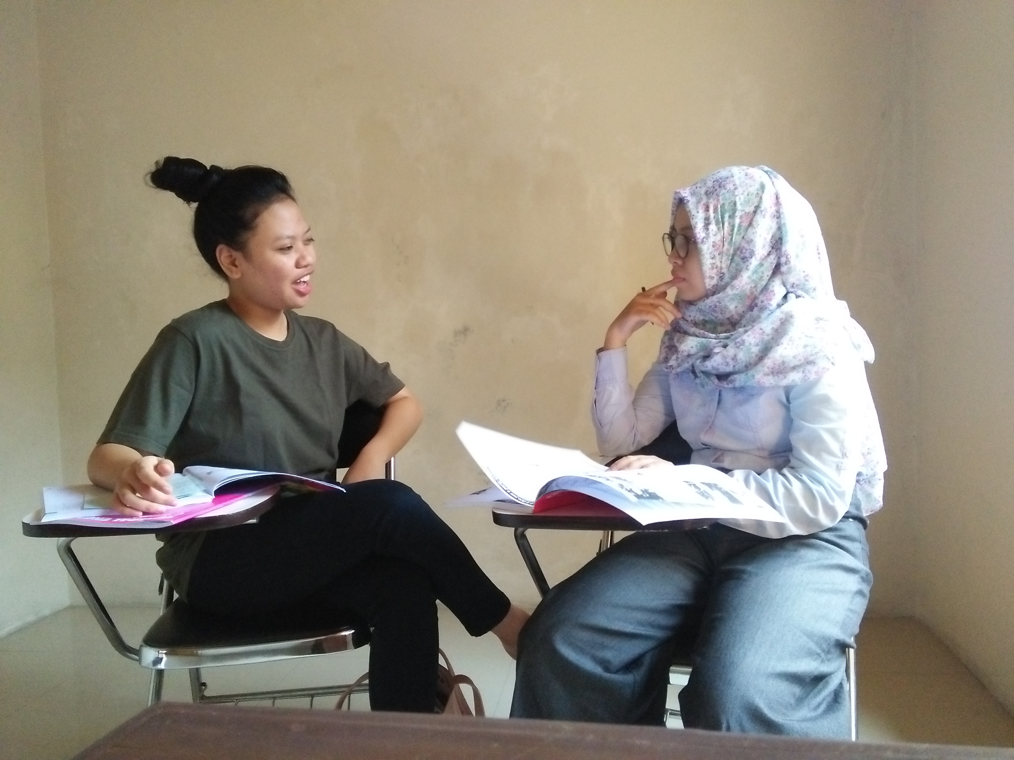 Pada saat pembelajaran berlangsung siswa akan dituntut aktif berbicara. Jadi pengajar akan selalu memberikan tema untuk berdiskusi. Hal ini untuk membiasakan siswa menggunakan Bahasa Inggris. Selain itu juga melatih keberanian siswa dalam berpendapat menggunakan Bahasa Inggris.