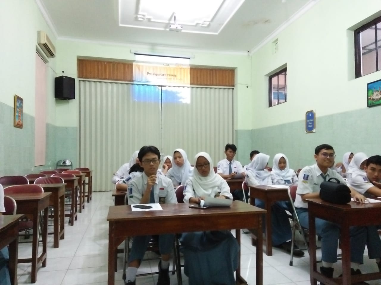 Kegiatan Pre-Departure Training diadakan di Ruang Multimedia SMA Negeri 5 Semarang. Kegiatan dibuka langsung oleh Ibu Kepala Sekolah. Kegiatan Pre-Departure telah dilaksanakan, persiapan performance sudah siap. Saatnya berangkat…..