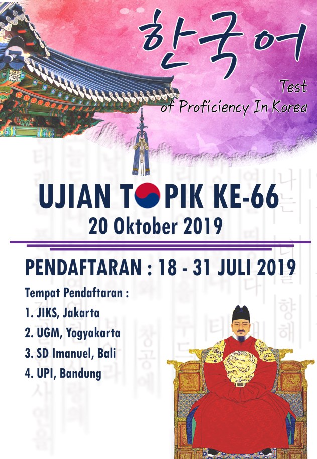 Teman-teman yang ingin mengikuti ujian TOPIK ke 66 bulan Oktober 2019 mendatang. Yuk, mulai mendaftar dari sekarang.