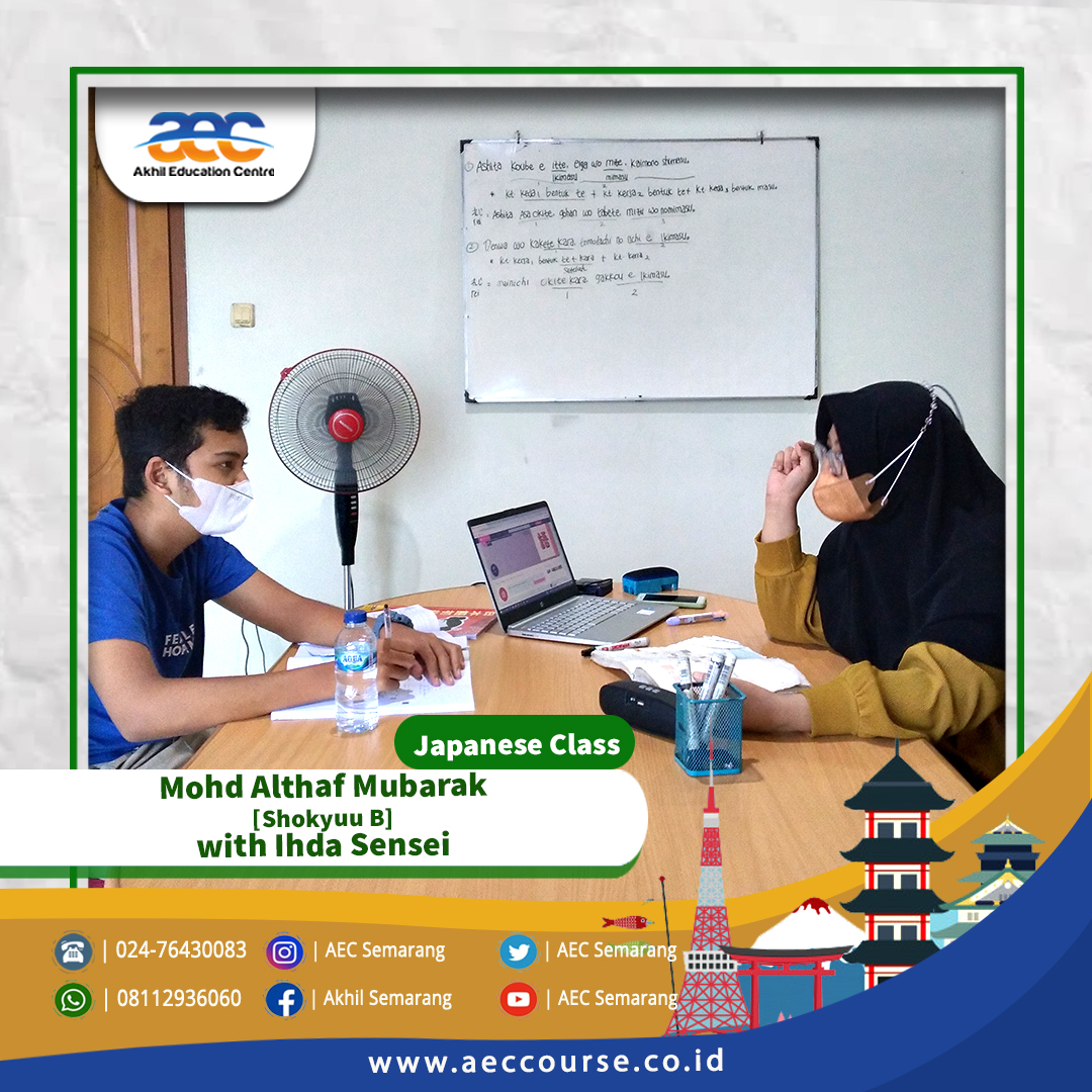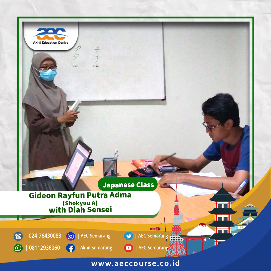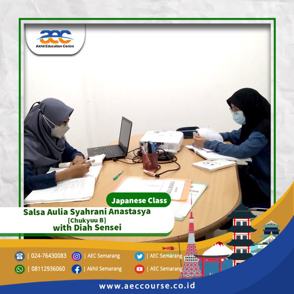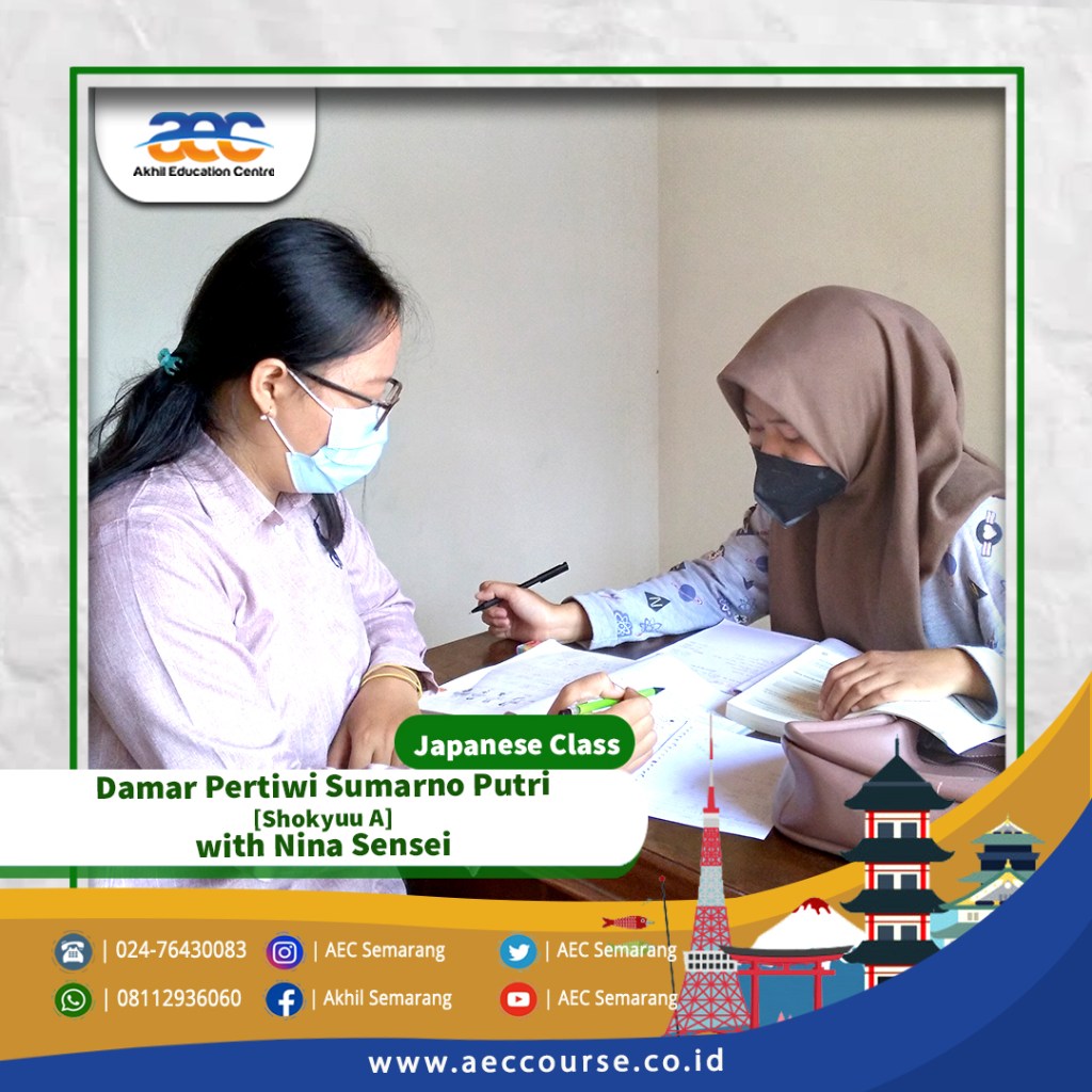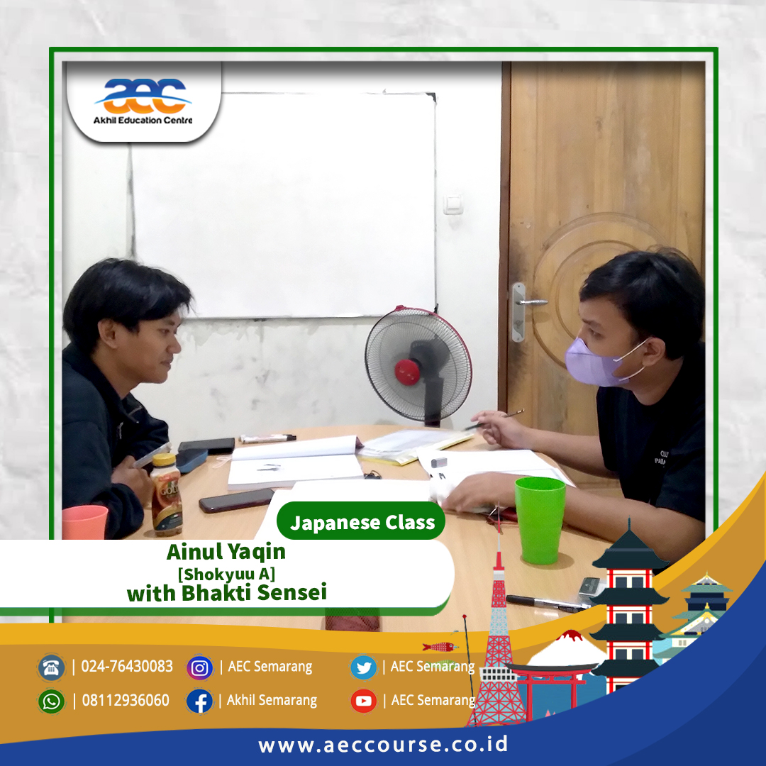 Akhil Education Centre [AEC] Semarang membuka kelas Kursus Bahasa Jepang untuk umum. Kelas Kursus Bahasa Jepang di AEC Semarang bisa diikuti oleh siswa SD, SMP, SMA, Mahasiswa hingga Pekerja.
