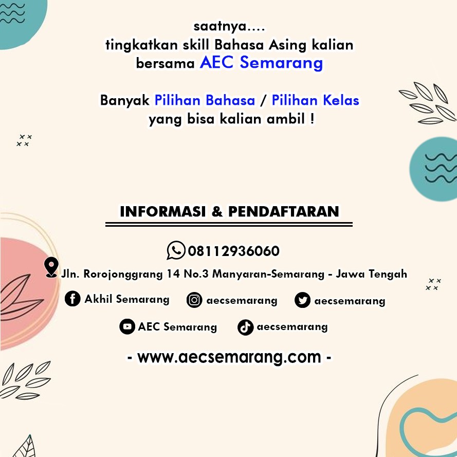 Di atas tadi perkenalan dalam Bahasa Jepang guys. Kalian yang ingin bisa menggunakan bahasa Jepang seperti di atas?? Yuk, langsung aja ke AEC Semarang.