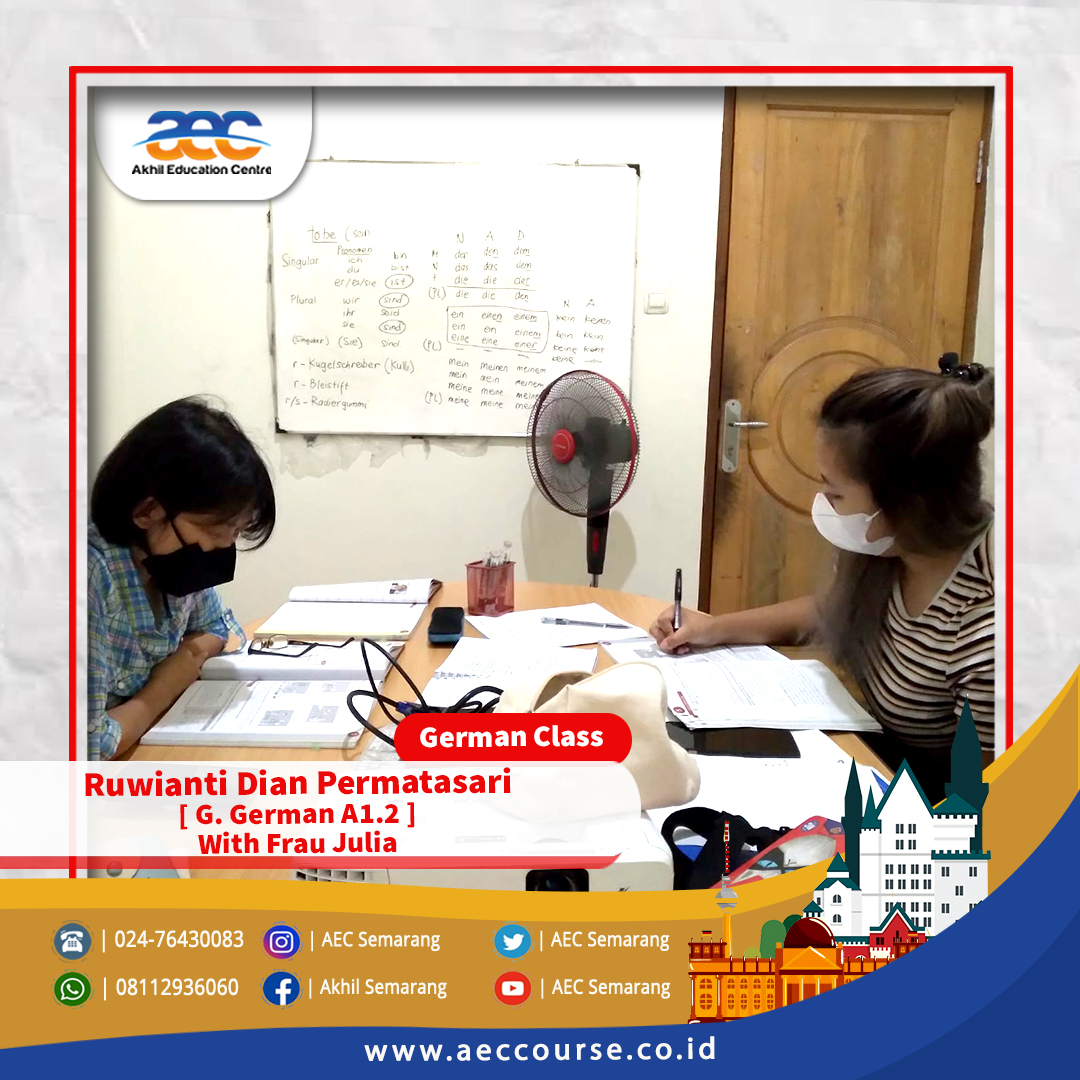 LKP AEC Semarang ini merupakan Lembaga Kursus dan Pelatihan Resmi ya. Sudah terdaftar di Dinas Pendidikan Kota Semarang dan memiliki NPSK [Nomor Pokok Sekolah Nasional]. Kelas Kursus Bahasa Jerman di AEC Semarang sudah ada sejak tahun 2019 yang lalu. Plihan kelasnya ada kelas Offline dan kelas Online. Saat ini baru ada kelas Private.