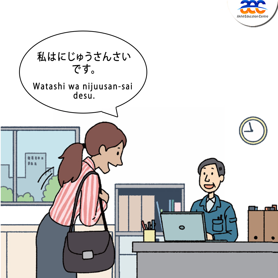 Di Jepang, untuk menyatakan umur/usia berbeda dengan pada saat membaca angka biasa. Namun, dalam menyatakannya juga sama mudahnya kok. Rumusnya yaitu angka di tambah ~sai. Namun ada beberapa pengecualian untuk angka 1, 8, 10 dan berlaku juga kelipatannya seperti 11, 18, 20 memiliki penyebutan khusus. Di bawah ini merupakan contoh menyebutkan usia atau umur.