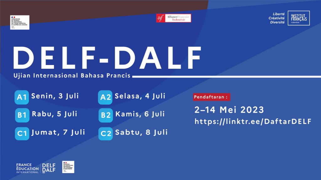 Teman-teman yang bulan Februari kemarin tidak sempat mengikuti ujian kemampuan Bahasa Prancis bisa mengikuti ujian di Periode bulan Juli 2023 guys. Ujian kemampuan Bahasa Prancis dikenal dengan ujian DELF-DALF.