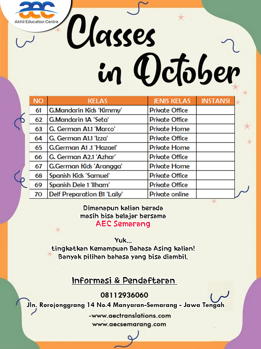 Kalian tertarik untuk belajar Bahasa Asing? Yukkk saatnya bergabung oktobergembira bersana AEC Semarang…