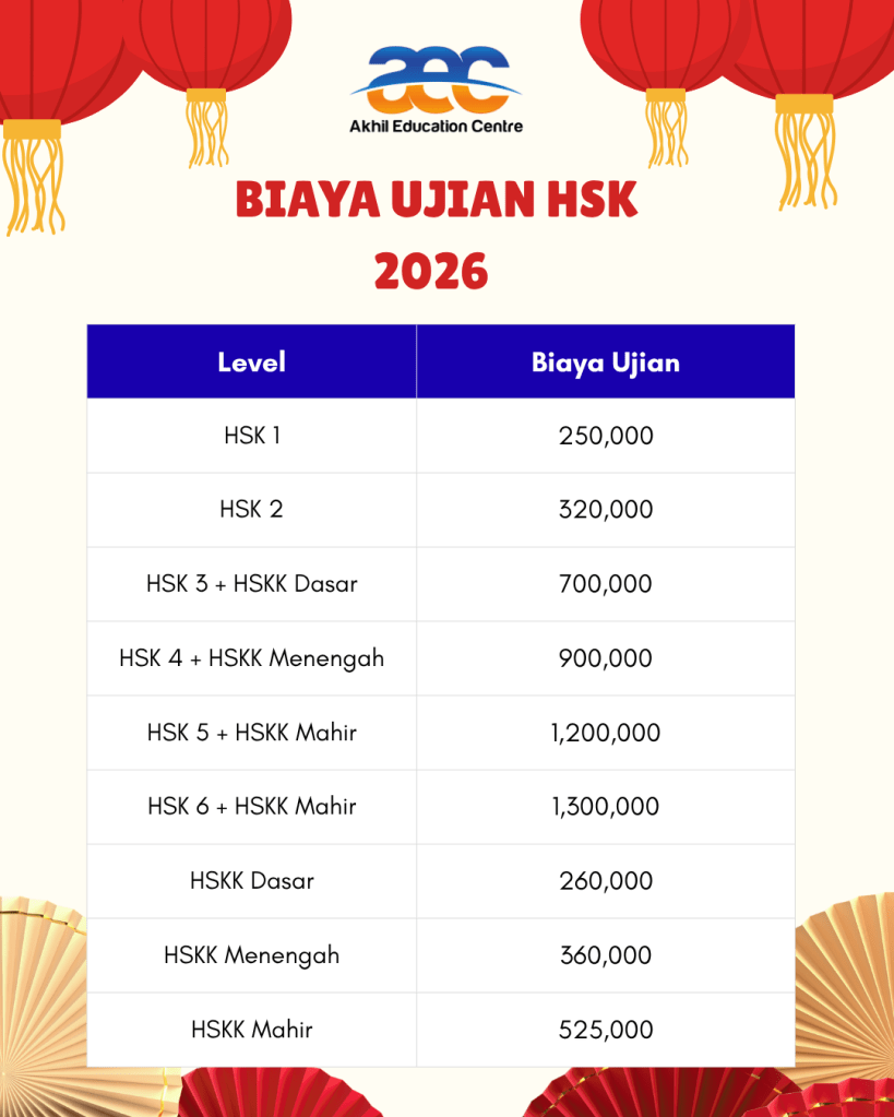 Selain it, teman teman juga jangan lupa untuk benar benar mempersiapkan diri sebelum mendaftar dan mengikuti ujian ya. Terutama dalam hal penguasaan materi Bahasa Mandarin sesuai level di inginkan. Supaya hasil yang teman teman harapkan dapat terwujudkan. Jika kalian membutuhkan kursus Persiapan HSK tidak usah khawatir ya, karena AEC Semarang siap membantu teman teman semua.