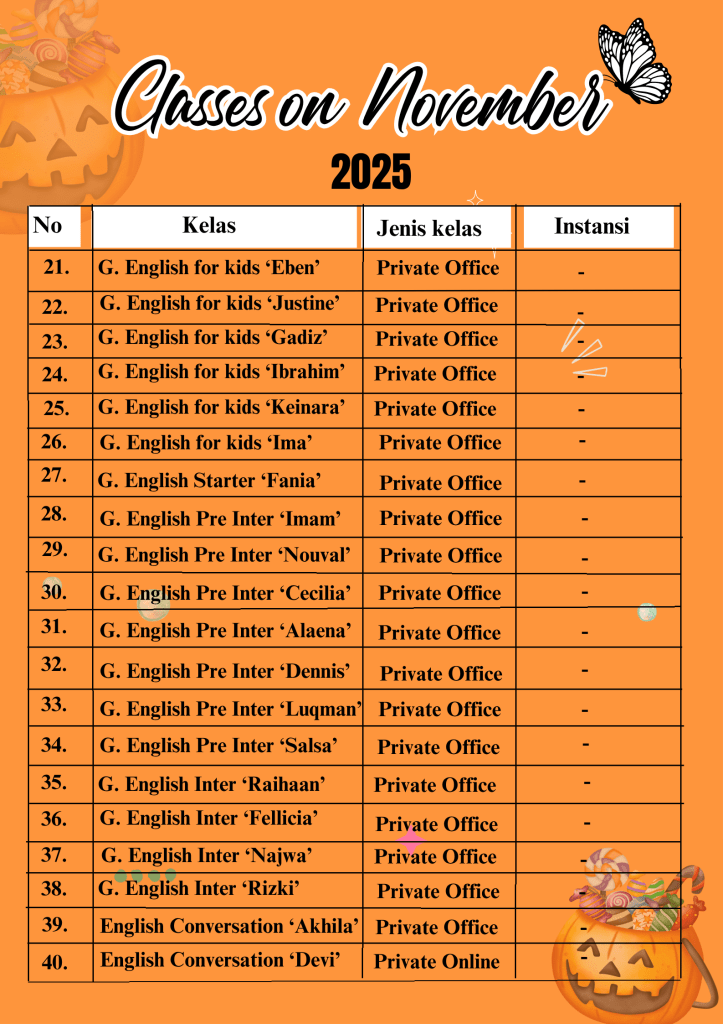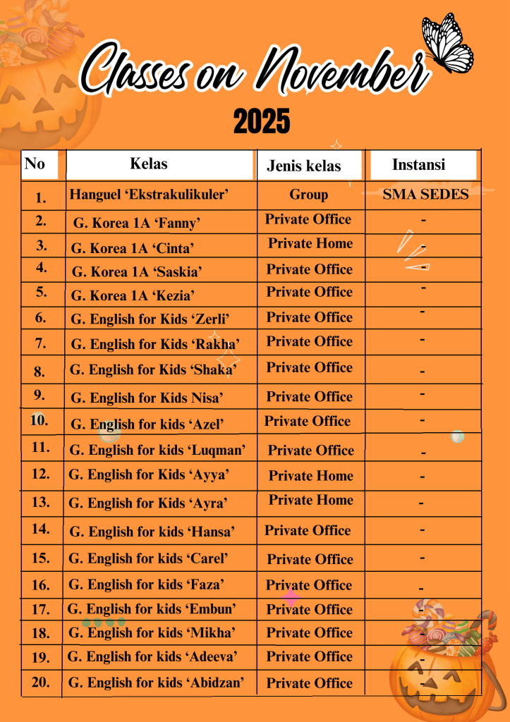 LIST KELAS AEC SEMARANG DIBULAN NOVEMBER : 105 KELAS BAHASA ASING