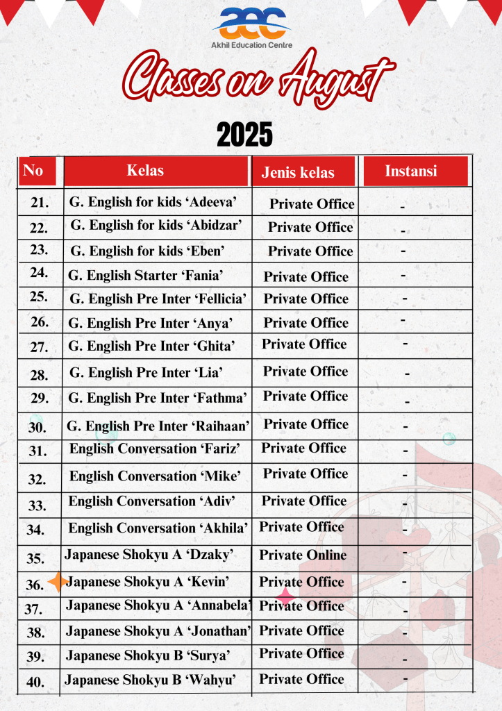 Di AEC Semarang dapat mempelajari Bahasa Asing dari level pemula atau 0 sekali, level menengah sampai dengan level atas. Jadi, teman teman yang belum memiliki kemampuan Bahasa Asing tidak usah khawatir, karena teman teman akan diajari dari 0 lho!. Jadi kalian masih menunggu apalagi? Yuk, segera daftarkan diri dan dapatkan promonya!