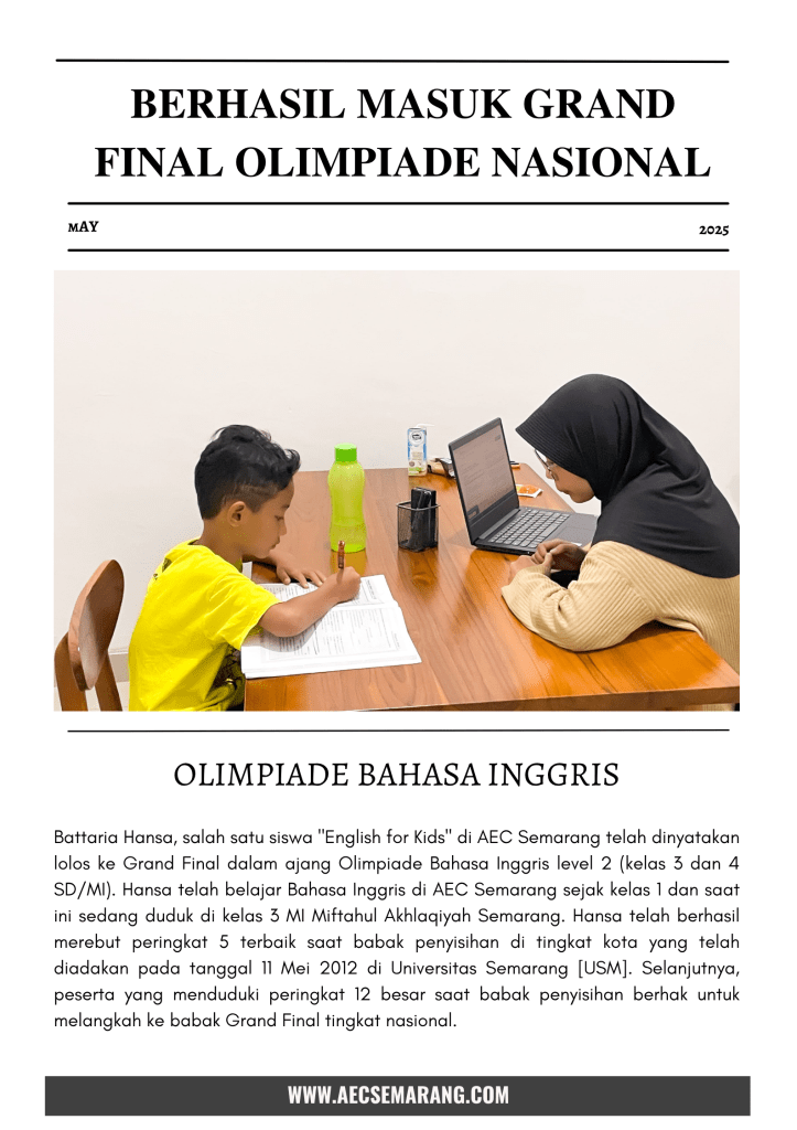 So, kalian masih tunggu apa lagi? Yuk segera mendaftaran dan belajar bersama AEC Semarang…
