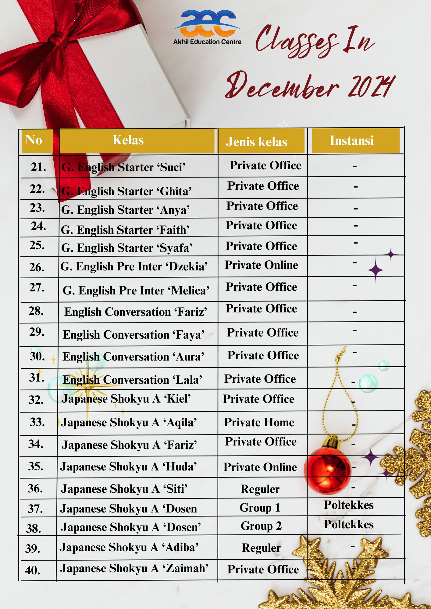 Tahun 2025 kira kira membuka Bahasa Asing apa lagi ya teman teman? Apakah ada saran nih? MinAEC akan dengan senang hati menerima masukan, kritikan dan saran untuk kebaikan AEC Semarang ke depannya.
