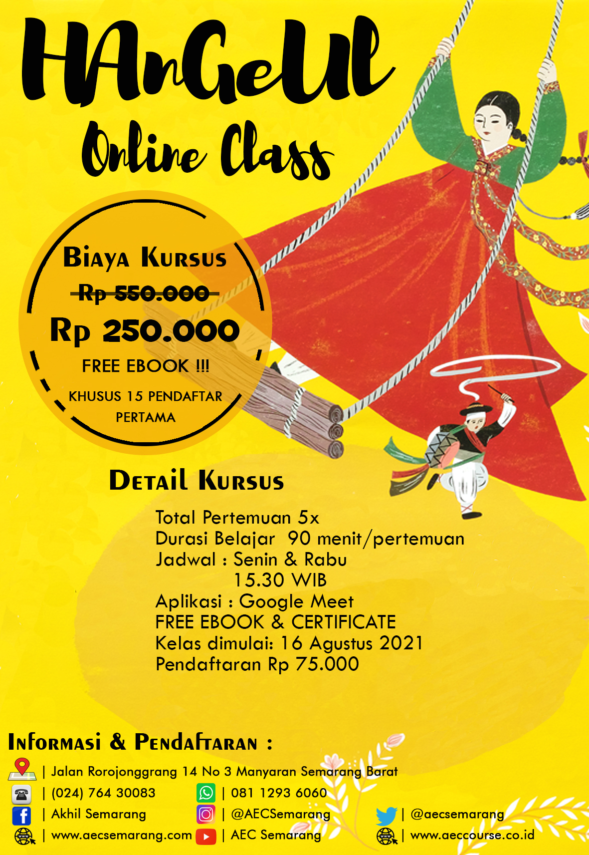 AEC Semarang kembali hadir memberikan info-info terbaru untuk kalian semua. Kalian yang ingin belajar Bahasa Asing cuzz segera merapat ke AEC Semarang.