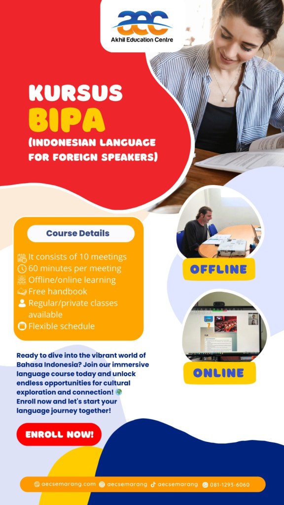 Istilah BIPA sudah tidak asing terdengar khususnya di dunia bidang pendidikan saat ini. Tapi beberapa orang mungkin juga masih menggapnya asing. Namun, ketika sudah mengetahui kepanjangan dari BIPA pasti tidak akan membingungkan apa itu BIPA. BIPA adalah Bahasa Indonesia bagi Penutur Asing yang artinya pembelajaran atau kursus Bahasa Indonesia untuk para penutur asing. Melalui program BIPA ini juga bisa dijadikan sebagai strategi untuk membuat Bahasa Indonesia dikenal pada ke kancah Internasional. Karena selain mempelajari Bahasa Indonesia siswa juga akan mengenal dan mempelajari budaya Indonesia.