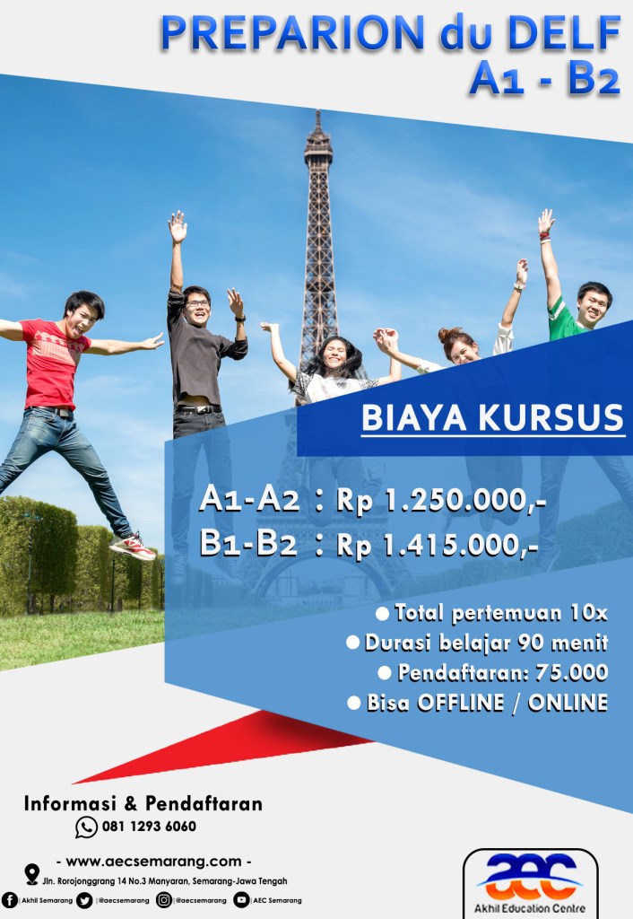 Bagi teman-teman yang ingin mengikuti kelas pemadatan atau intensive sebelum mengambil ujian DEFL-DALF langsung aja merapat ke AEC Semarang. AEC Semarang membuka kelas intensive ujian DELF-DALF periode Februari 2023. Informasi lebih lanjut bisa langsung kontak AEC Semarang.