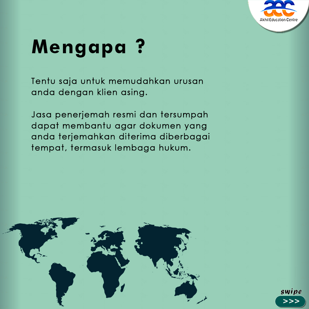 Butuh jasa menerjemahkan dokumen kalian? Cuss langsung aja ke Akhil Education Centre [AEC] Semarang. Dokumen-dokumen kalian bisa diterjemahkan secara tersumpah (SWORN) maupun tidak tersumpah.