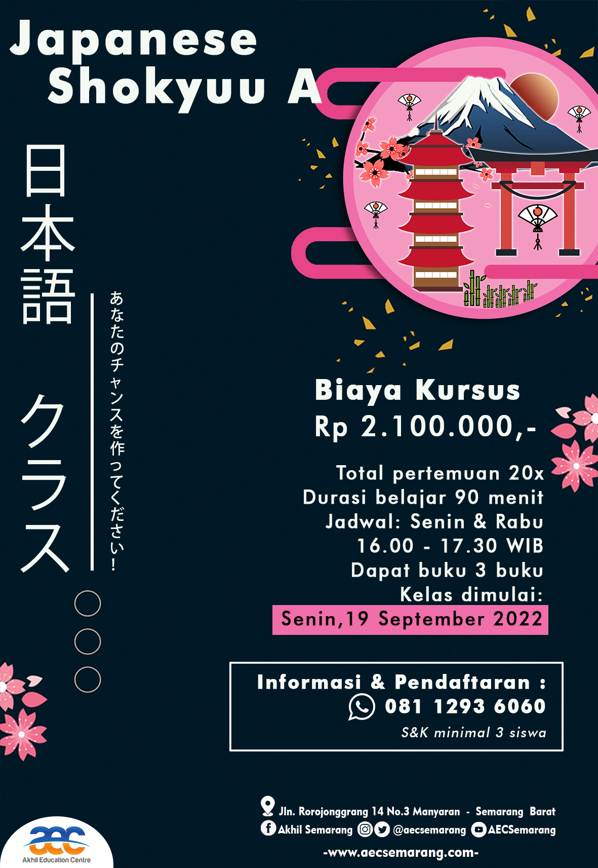 Teman-teman yang saat ini bingung mencari Tempat Kursus Bahasa Jepang di Semarang. Langsung aja jatuhkan pilihan kalian di Akhil Education Centre [AEC] Semarang.