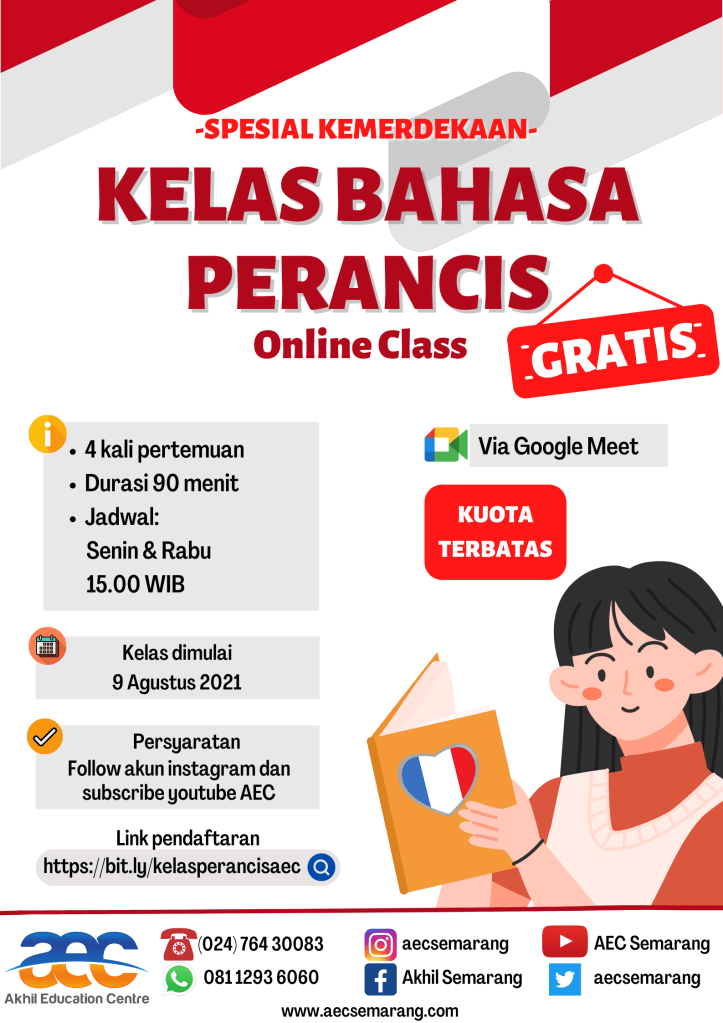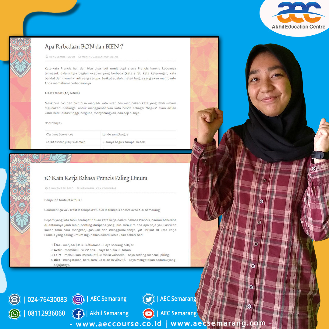 Bonjour …. Bonjour ….masih ingatkah kalian jika ada 2 mahasiswa Universitas Negeri Semarang (UNNES) yang melaksanakan PKL di Akhil Education Centre [AEC] Semarang. Mahasiswa-mahasiswa tersebut akan berbagi cerita pengalaman mereka selama PKL di AEC. Artikel sebelumnya ada Virginia yang sudah bercerita mengenai pengalamannya. Sudah dibaca kan ??? Jika belum bisa langsung baca di sini ya.