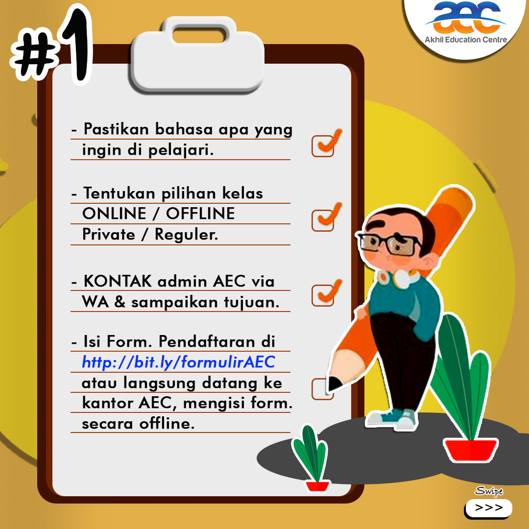 Mudah kan langkah-langkahnya. Ayo join di kelas-kelas Bahasa Asing, AEC Semarang! Banyak promo menark juga yang selalu ada di setiap bulannya.