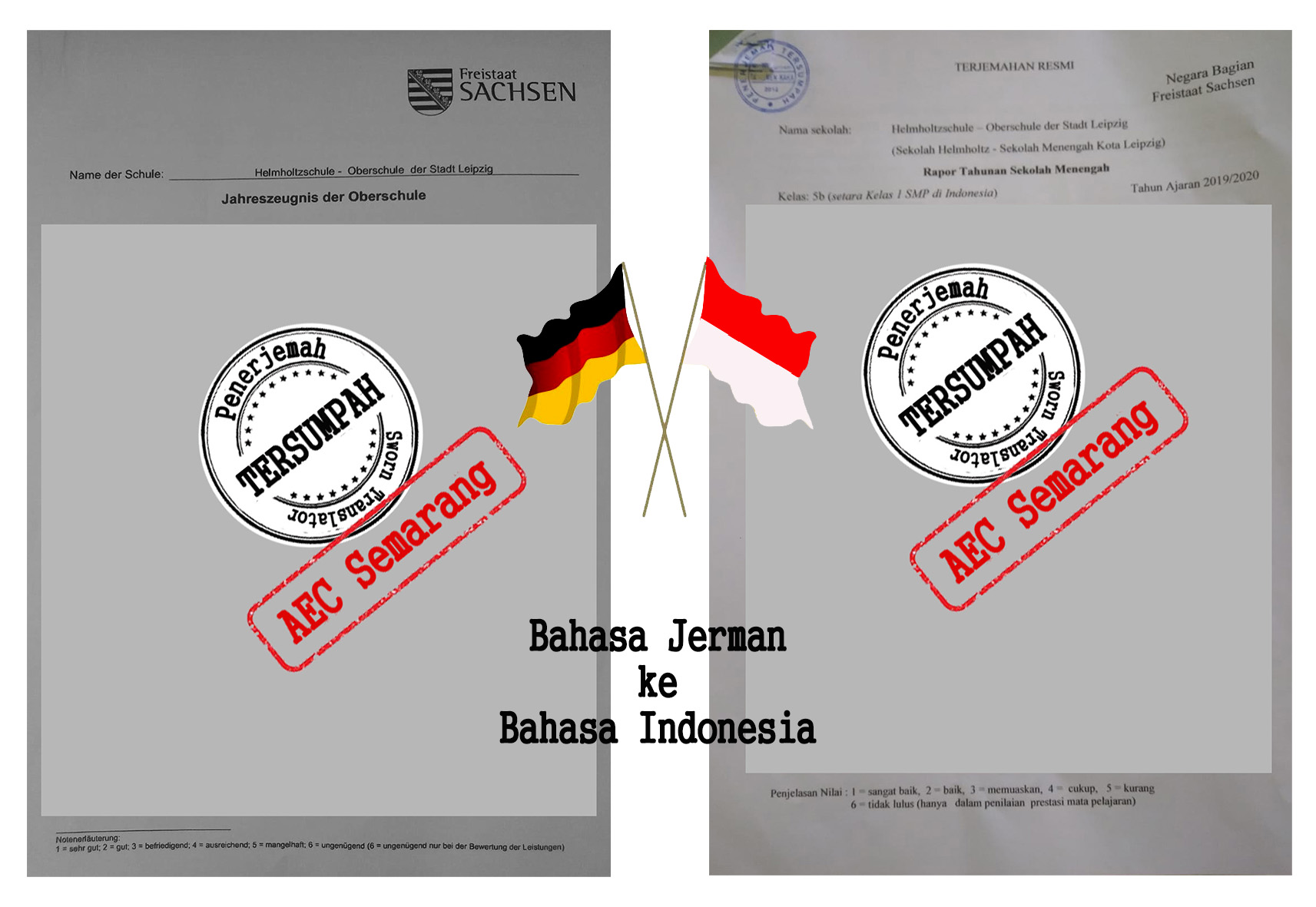 AEC Semarang menyediakan Jasa Penerjemah Tersumpah untuk beberapa Bahasa Asing. Salah satunya Bahasa Jerman. Penerjemah Tersumpah AEC Semarang baru saja menerjemahkan dokumen raport dalam Bahasa Jerman ke dalam Bahasa Indonesia.