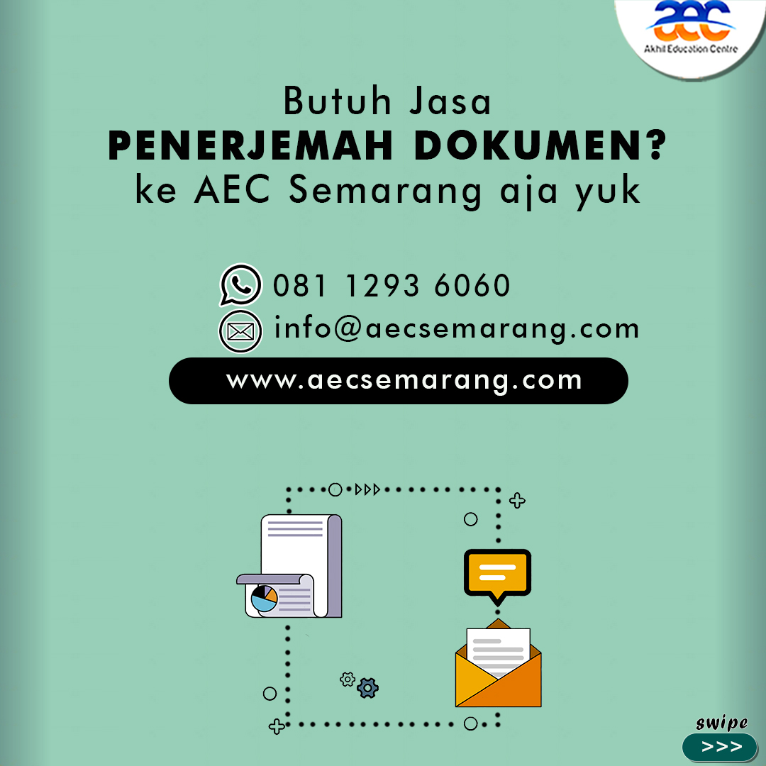 Butuh jasa penerjemah untuk menerjemahkan dokumen-dokumen kalian? Tak perlu risau lagi teman. Akhil Education Centre [AEC] Semarang menerima Jasa Terjemahan Dokumen baik secara Tersumpah [SWORN Translation] maupun Non Translation.