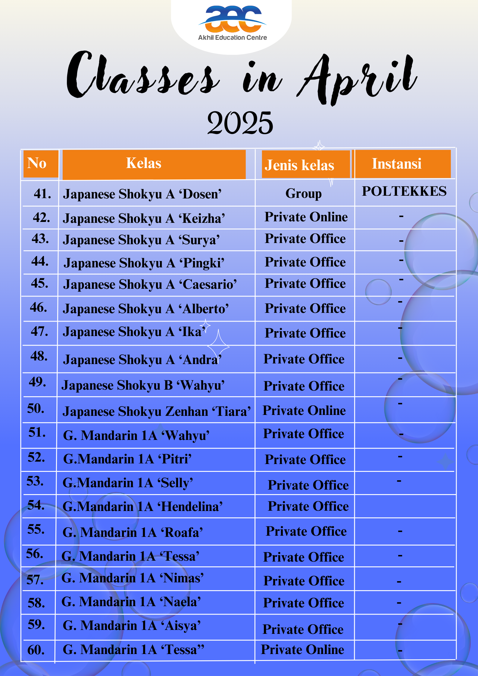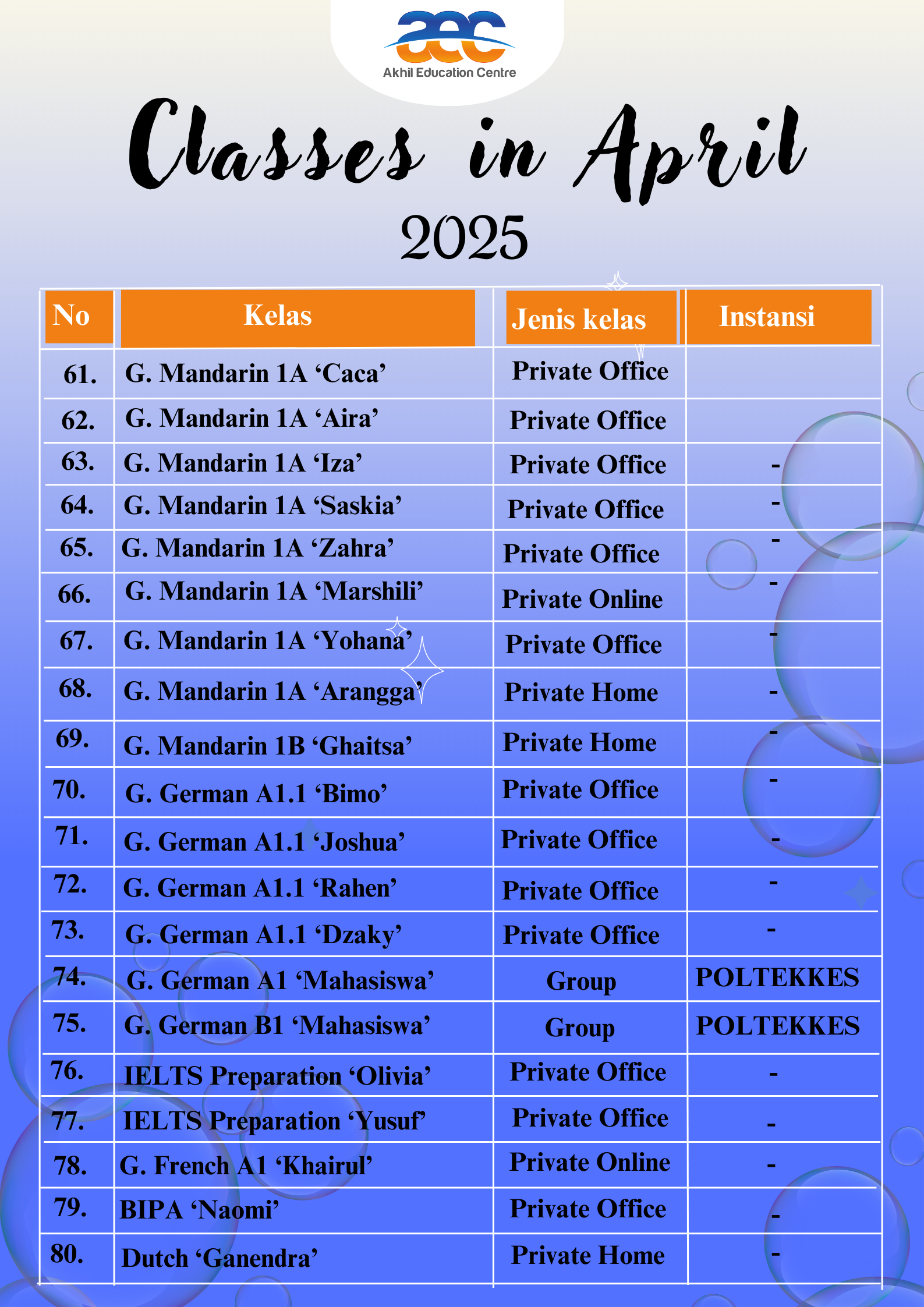 Kalian tidak usah khawatir promo ini berlaku untuk semua pilihan Bahasa Asing di AEC Semarang. Jadi apapun pilihan Bahasa Asing kalian bisa menggunakan promo ini dengan S&K yang berlaku untuk promo ini. Promo special Hari Natal dan Tahun baru ini berlaku untuk pendaftaran siswa baru tanggal 1-19 Desember 2025.