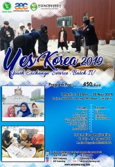 lintas batas untuk pemuda Indonesia khususnya mahasiswa ke Republik Korea selama 2 bulan. Program ini mencakup pengenalan bahasa, pertukaran pendidikan dan beberapa acara budaya yang menjembatani peserta lebih mengenal tentang Korea. Program YES KOREA ini teruntuk kalian semua yang memiliki minat pertukaran international, pribadi yang berpikir terbuka serta peka terhadap masalah social dunia international.