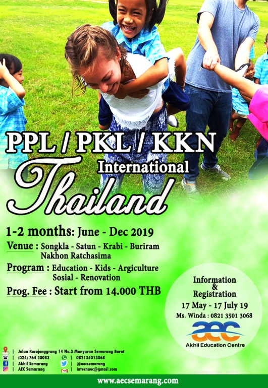 Akhil Education Centre [AEC] Semarang akan kembali membuka program PPL International Thailand tahun 2019. Program akan diselenggaran: