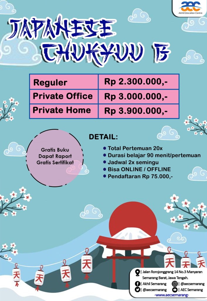 Detail kursus Bahasa Jepang di kelas Chukyuu B dapat dilihat pada poster di bawah ini.