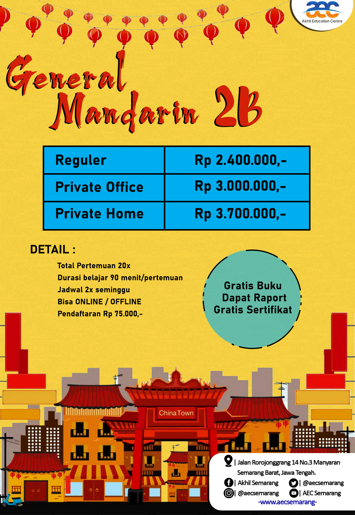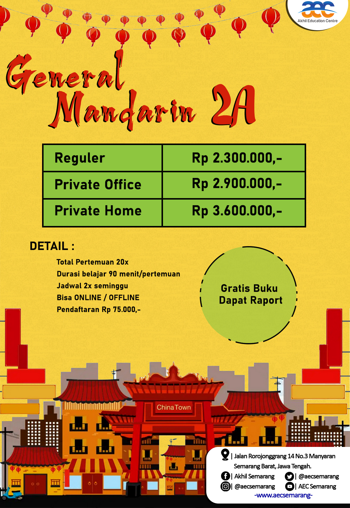 General Mandarin Level 2 ini merupakan kelas Bahasa Mandarin tingkat lanjutan. Level ini dibagi menjadi 2 yaitu General Mandarin Level 2A dan General Mandarin Level 2B.